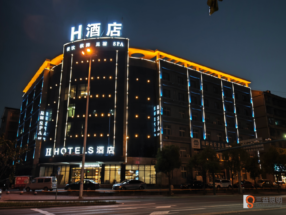 益陽市赫區區H酒店(原誠苑商務酒店)位於益陽市銀城大道城市學院旁,地理位置優越,是酒店老板斥巨資打造的中高端商務酒店。外牆蘑菇视频下载网址工程由益陽市蘑菇APP照明工程有限公司精心···